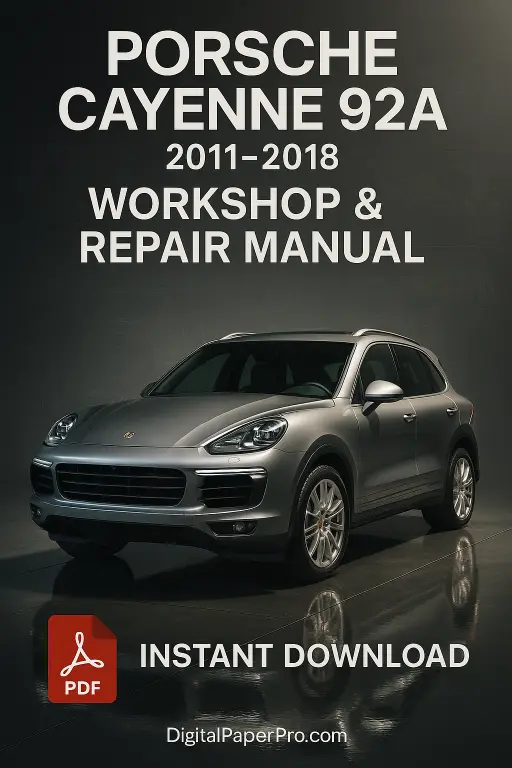 Instantly download the PORSCHE Cayenne 92A Workshop Manual (2011–2018) — the official OEM service and repair guide used by Porsche dealerships. This searchable PDF covers engine, transmission, suspension, brakes, electrical, wiring diagrams, HVAC, and more. Compatible with all devices, it provides factory-accurate instructions to keep your Cayenne in peak condition while saving thousands on repairs.